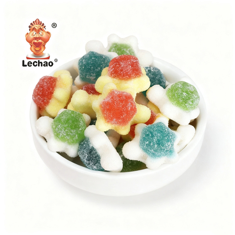 Caramelos al por mayor con forma de estrella recubierta de azúcar Halal Gummy Jelly Candy Mango Apple Flavor Soft Candy